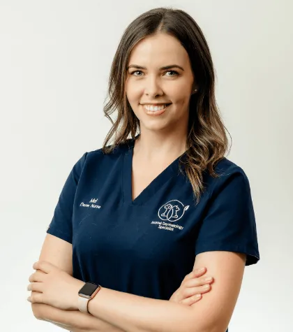 As a Senior Dermatology Nurse at Animal Dermatology Specialist, Mel plays a vital role in patient care, diagnostic support and treatment delivery. She also contributes to team development by mentoring junior nurses and supporting a consistent, high standard of care. Her extensive experience in veterinary dermatology enhances the coordination, efficiency and overall quality of our clinical services, helping to create a smoother, more reassuring experience for clients and their pets at every stage of care.